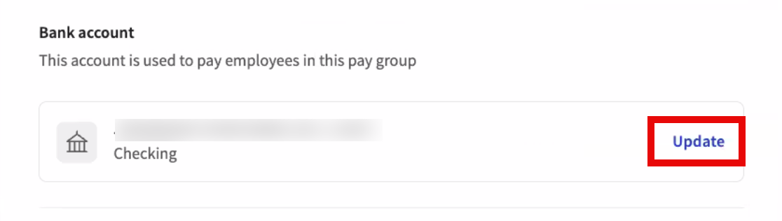 To update your payroll bank account in Toast Payroll, select Payroll > Pay group settings. Locate the pay group you want to update and select Update to the right of the existing bank account.