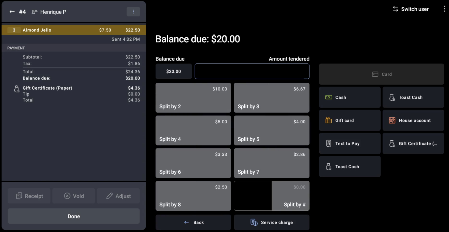 When you use split payments evenly on the Toast POS app, all payment types are included in the split amount calculation, including those set up as Treat as Discount. You now get accurate split amounts when you use split payments, regardless of how each payment type is configured.